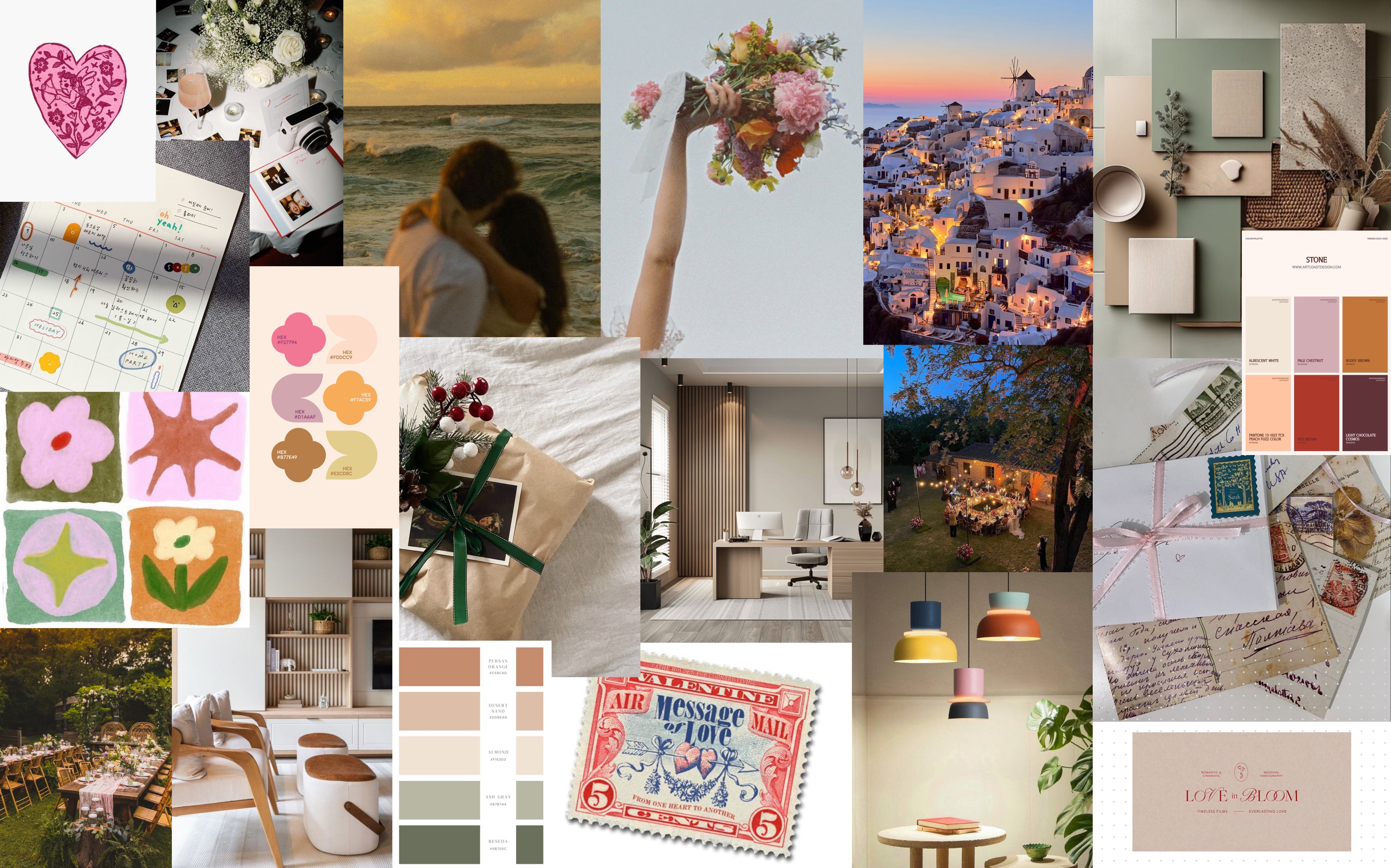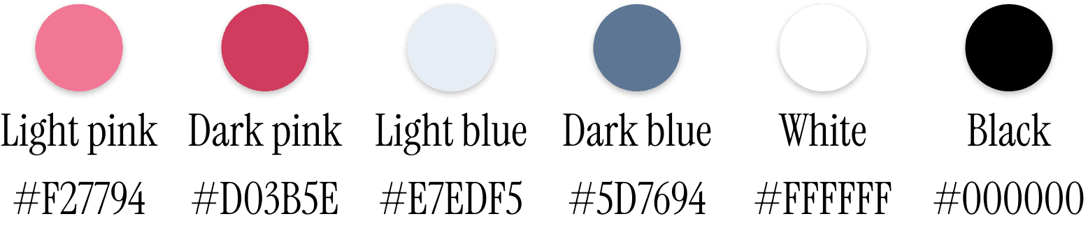 We knew the UI should use muted, romantic colours with simplistic, modern typography; we decided on a deep raspberry pink and a dusty blue for our core colours. We kept the typeface consistent with Poppins for a uniform, cohesive look.